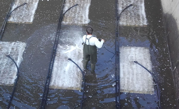 Eine Hochdruckreinigung der Belüftermembranen kann bei schwierigen Einsatzbedingungen und nach mehrjährigem Einsatz notwendig sein und wird zur Verbesserung des Sauerstoffeintrags beitragen. Ihr Belüftungssystem mit MESSNER Plattenbelüftern erhält durch eine fachgerechte Ausführung der Hochdruckreinigung Druckverlustwerte und Sauerstoffeintragseigenschaften fast wie im Neuzustand zurück.